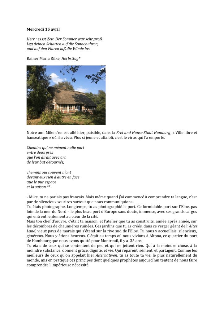 Mercredi 15 avril 2020 Publié parmariegautheron23 avril 202022 Mai 2020Publié dansmontreuil, Non classé page 1/2 page 2/2 Partager : Partager sur X(ouvre dans une nouvelle fenêtre) X Partager sur Facebook(ouvre dans une nouvelle fenêtre) Facebook J’aime chargement… Similaire