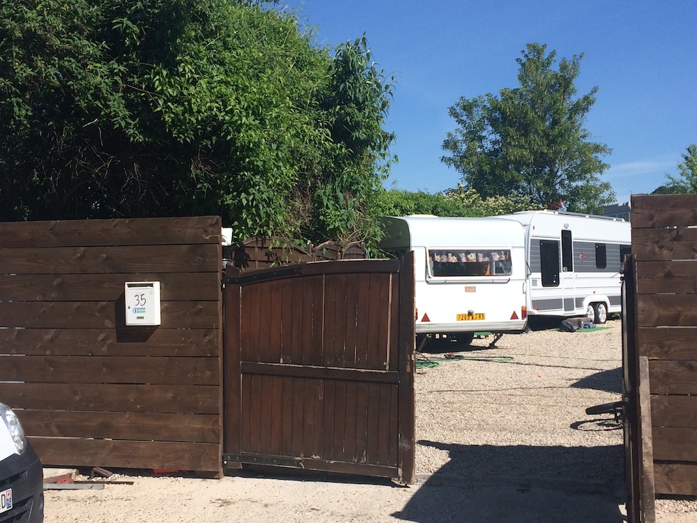 Les quelques personnes tranquillement installées dans leurs enclos – des hommes, plutôt, ne quittaient pas la gadji des yeux, jusqu’à ce qu’elle ait disparu de leur périmètre. Des gosses se poursuivaient. Au moment où je photographiais la rue en plan large, l’un d’eux a crié – papa, papa, y a la gadji qui nous prend en photo ! – occasion de discuter deux minutes avec son père, et de lui montrer mes images du quartier. On s’est quittés très poliment. Un peu plus haut, visiblement égaré, un couple de gadjé avec poussette franchissait les palissades de l’autoroute comme les douves d’une forteresse.