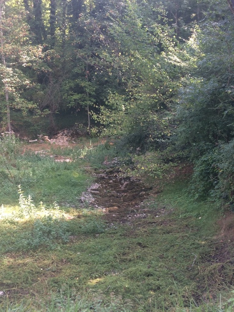 Et aussi, ce petit canal en pierre où on faisait voguer des feuilles et des coquilles, jusqu’au ruisseau plein de têtards en contrebas.
