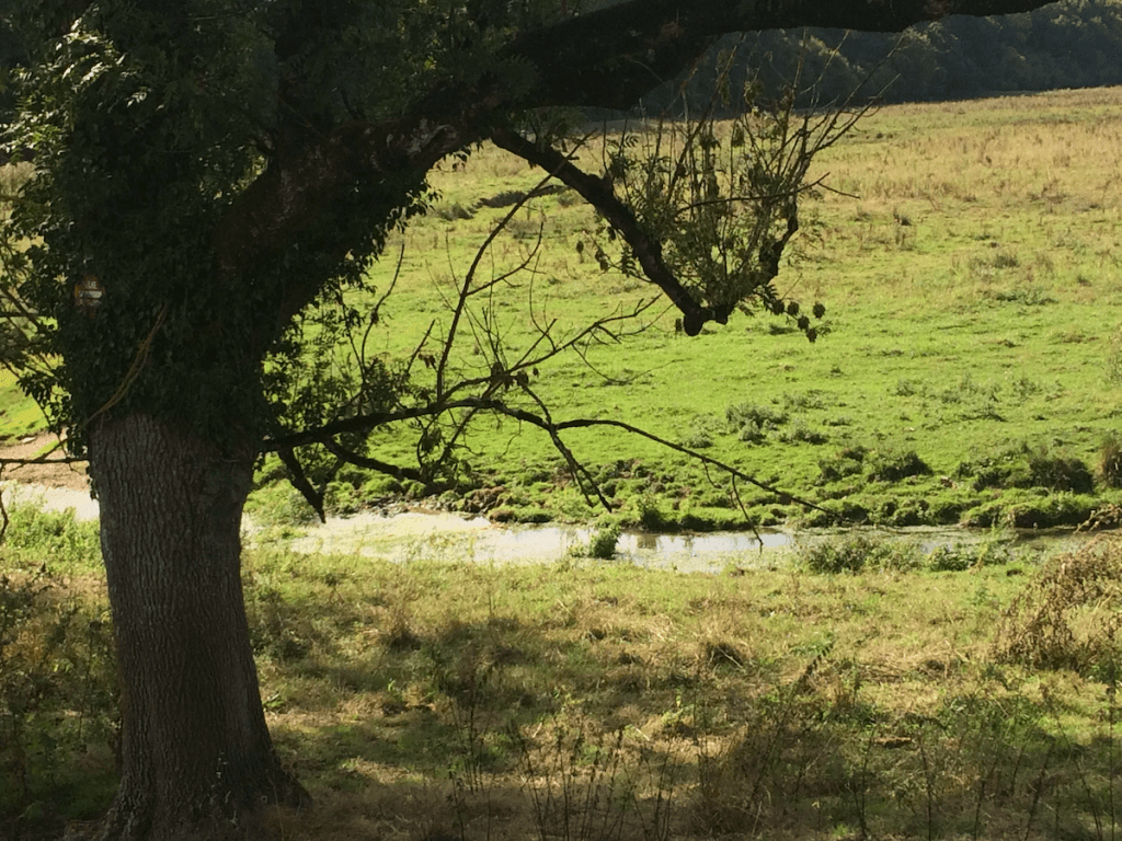 Pas loin d’ici, près d’un vieux moulin, il y a une source au fond d’un vallon, où s’est installée jadis une abbaye cistercienne. Un jour, son abbé commandataire, Monsieur de Coligny, est devenu protestant. Il a brûlé son abbaye, et il a fait massacrer tous les moines. Il n’y a pas longtemps, l’abbaye était une étable avec quelques vaches. C’est maintenant une sorte de Centre d’art avec quelques touristes.