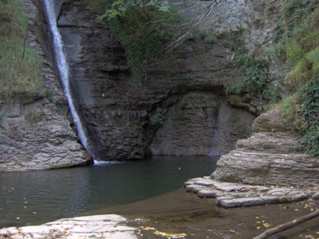 Ainsi, en tombant d’une roche escarpée, cette eau noire bruissait tellement, qu’en peu de temps l’oreille en serait blessée.