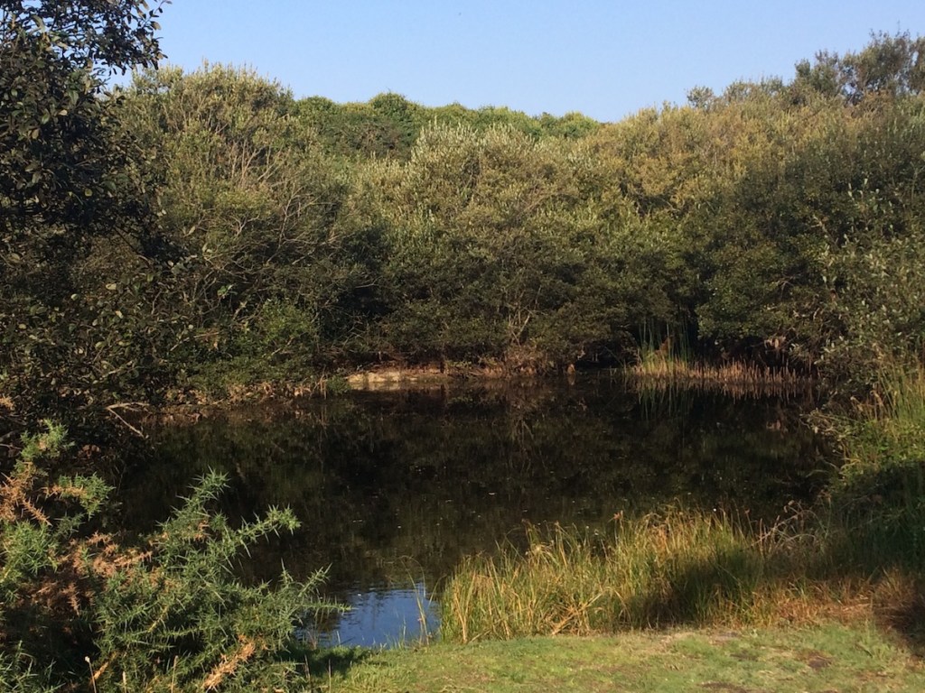 L’eau de l’étang est noire, douce, profonde entre les arbres, les osiers. Autour, un marais, une mangrove bretonne. L’étang est bien caché.