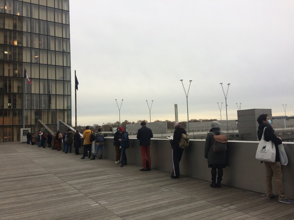 Chaque jour ou presque, ces temps-ci, je vais à la Bibliothèque Nationale. Métro Quai de la Gare. Pour accéder au temple du savoir, il faut monter, monter des marches, puis le matin, qu’il pleuve ou vente, attendre, attendre (covid oblige), puis descendre, descendre des escaliers roulants dans un silence sépulcral, sous une voûte d’une hauteur pharaonique. « Une esthétique à la fois classique et minimaliste », dit le site de la BNF.
