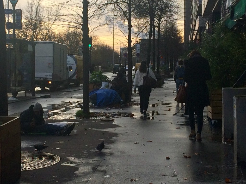 Chaque jour ou presque, ces temps-ci, je vais à la Bibliothèque Nationale. Métro Quai de la Gare. Le long des quais, en face de l’allée Arthur Rimbaud, poussent de beaux arbres dans les bacs des magasins Truffaut. Sur le trottoir à leurs pieds, qu’il pleuve ou vente, des migrants sans abri. Silencieux. Ils ne font pas la manche.