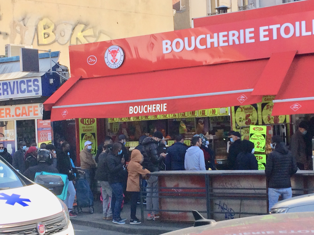 Ramadan à bas bruit cette année encore. N’empêche que la veille du 13 avril, la rue de Paris était embouteillée : grande presse devant les boucheries halal. Que des hommes – car ce sont les hommes qui achètent la viande. On imagine les femmes pendant ce temps dans leurs cuisines, au milieu de montagnes de farine, d’amandes, de miel… À la porte de la Grande Mosquée de Montreuil Masjid Al Oumma, une affiche informe : « Au vu des circonstances actuelles nous sommes contraints de réduire la capacité de votre mosquée ce qui ne nous permet pas d’accueillir nos sœurs et enfants dans de bonnes conditions. »