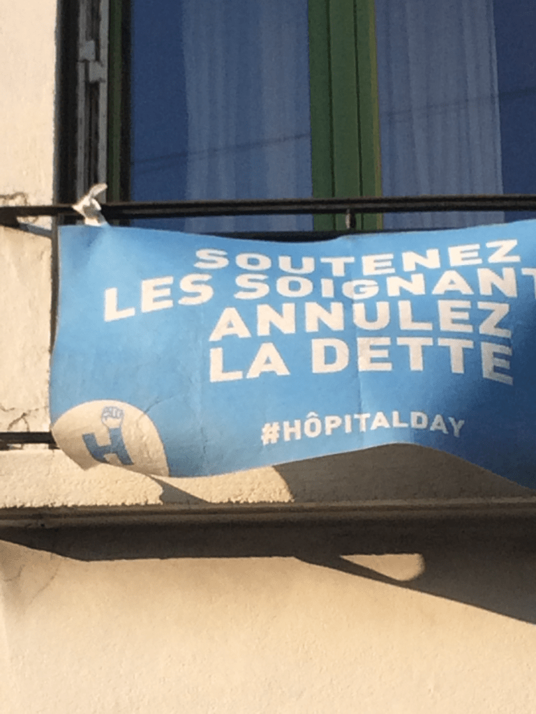 …« Soutenez les soignants, annulez la dette » disait une vieille banderole du #hopitalday municipal ( – tiens, c’était en novembre dernier… une éternité)