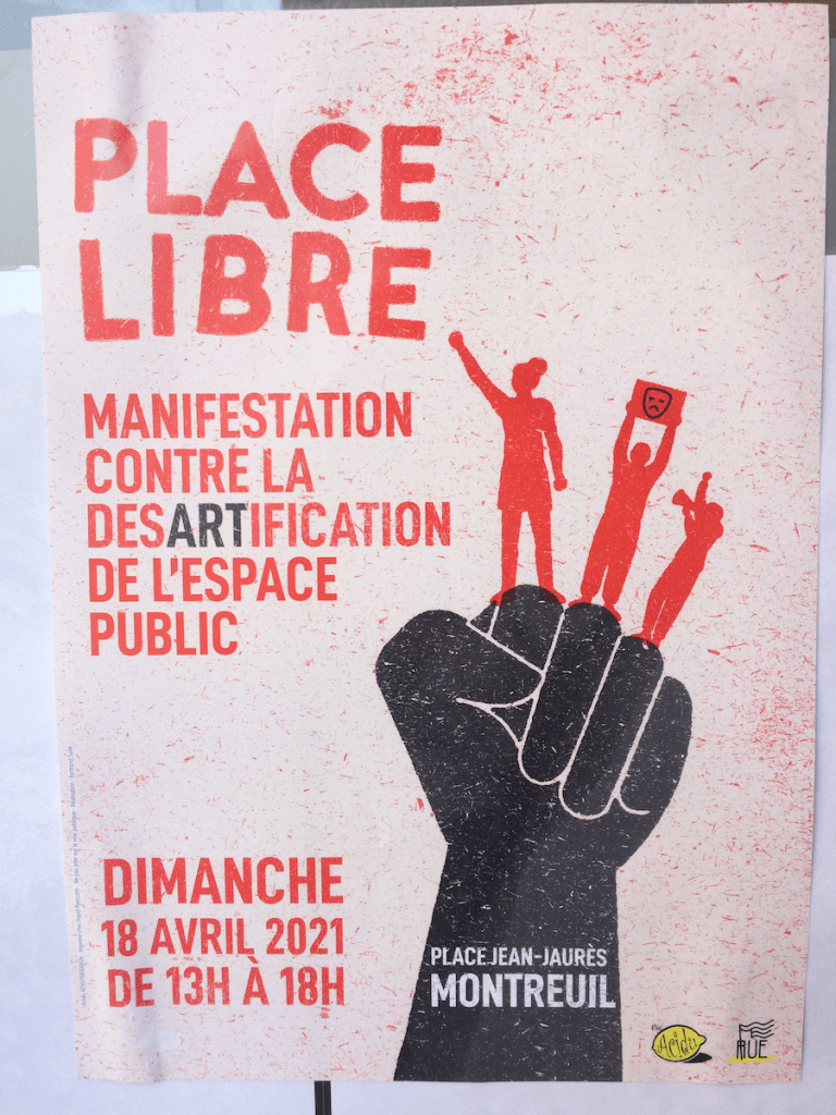 …Sur un mur, il y avait toujours l’affiche de la manif Place libre du 18 avril (manifestation contre la désartification de l’espace public) que personne n’avait encore arrachée