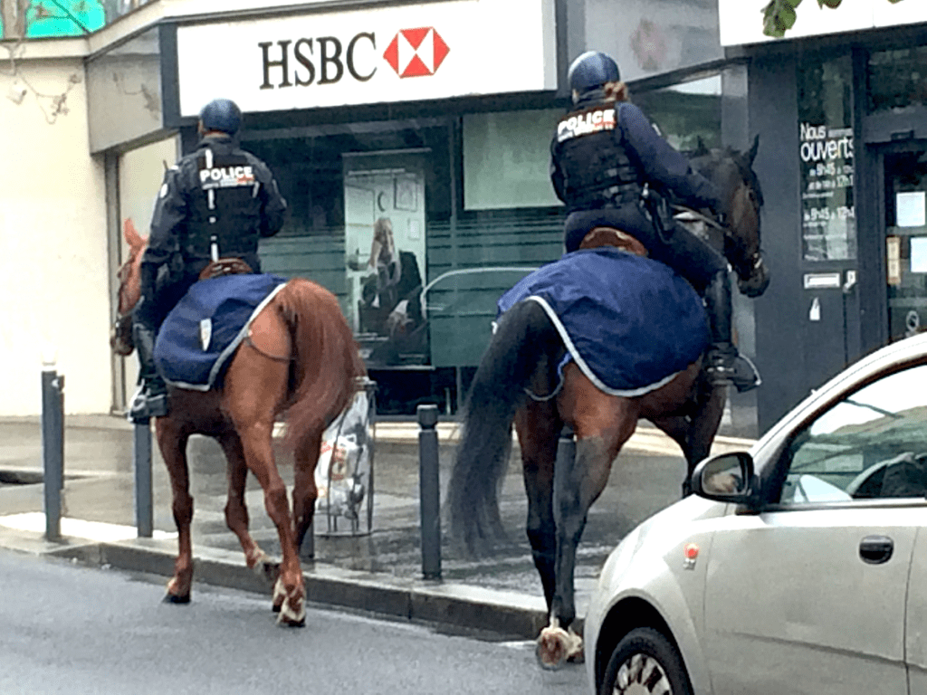 – Ah, si, on a vu caracoler, dans l’après-midi, deux splendides chevaux avec leurs cavaliers de la police montée, venus de je ne sais où, allant je ne sais où.