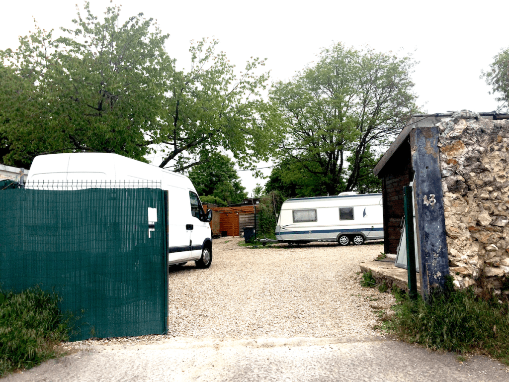 Tout à l’heure, je suis retournée rue Saint Antoine. Les caravanes sont là comme d’habitude, derrière des palissades, des portails, des murs à moitié écroulés. Des gens circulent d’une cour à l’autre, bricolent dans leurs autos. Tranquilles. On croise aussi quelques bobos en vélo ou à pied, avec leurs cabas remplis de légumes (beaucoup de bettes, en ce moment), qui reviennent des jardins « remarquables » (classés) des Murs à pêches – Jardins Pouplier, Fruits défendus… : dans un coquet pavillon perdu au milieu des habitations roms, il y a aussi l’association Le sens de l’humus.