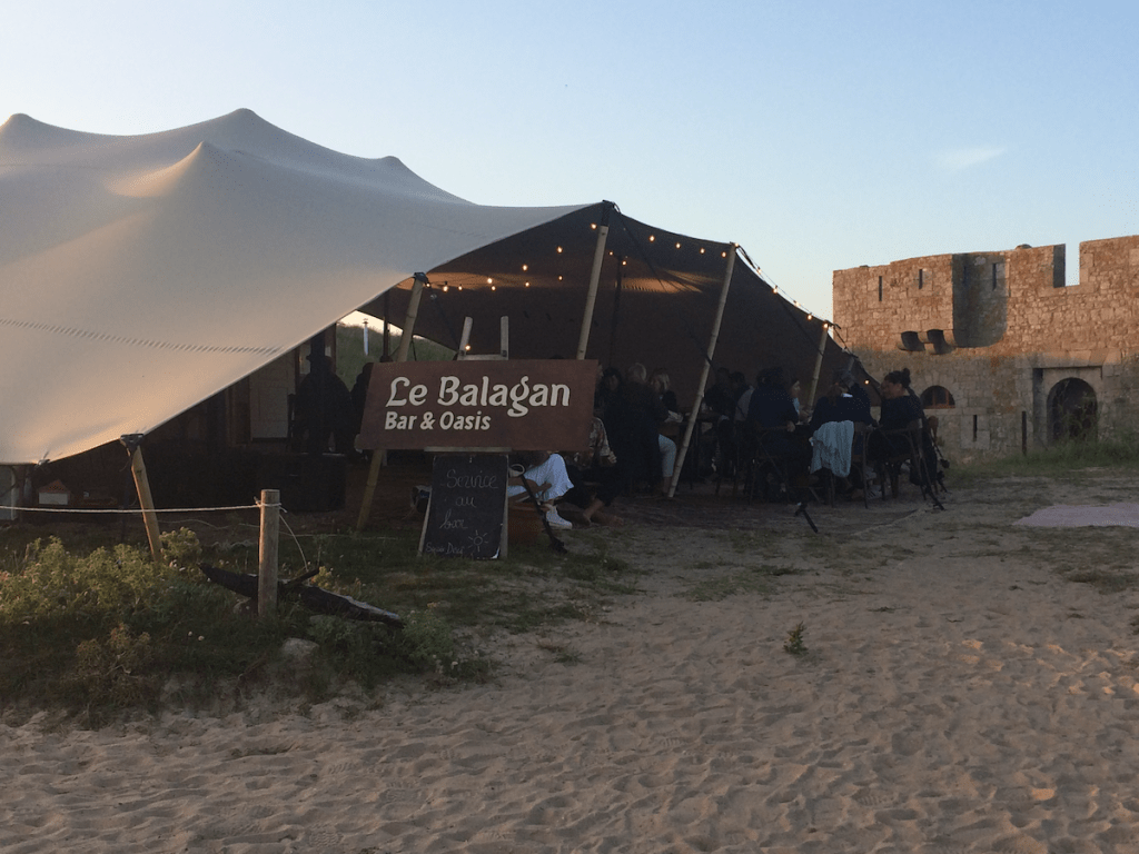 Sur le chemin d’En Tal, un panneau indique la direction du Balagan, « Bar et oasis » : c’est une vaste tente simili-berbère, dressée près du Fort, tout au bout de l’île, avec des tapis sur le sable, mais des tables hautes et des chaises de bistrot.