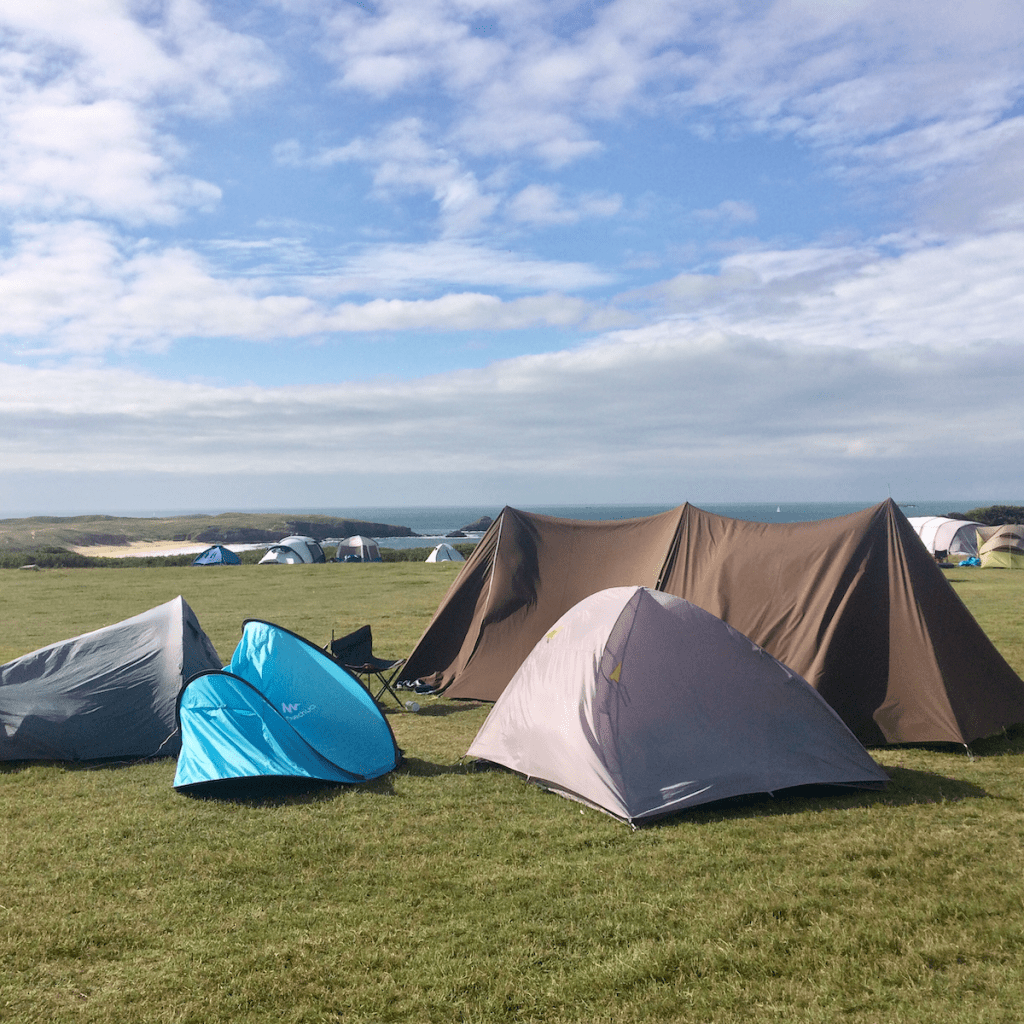 Les solitaires à grande tente qu’on devine impeccablement organisée, et les petites familles tassées dans de petites tentes, qu’on imagine bourrées à craquer