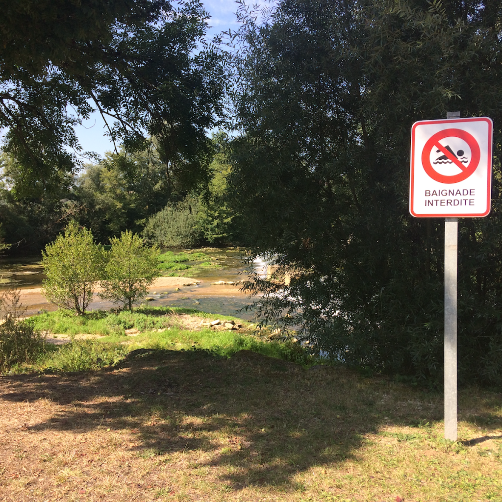 Car ici, sauf aux abords des commerces (une pharmacie, deux boulangeries, deux coiffeurs, une supérette, et à l’extérieur du bled, un routier), auxquels tout le monde ou presque se rend en voiture – on ne voit personne. Jamais. Même pas à la baignade, en bas du village, dans l’eau délicieuse de l’ Armançon. « Baignade interdite », dit un panneau, et juste à côté, « Baignade non surveillée ». Comprenne qui pourra.