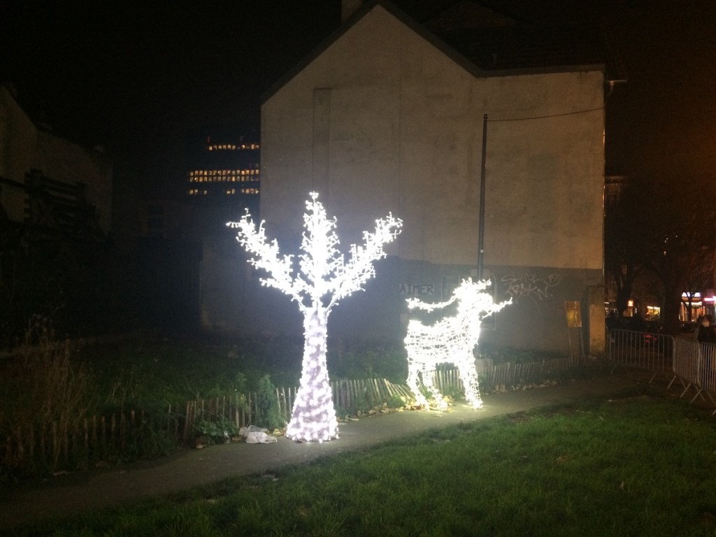 Dans les rues de Montreuil, début décembre, des créatures étranges s’étaient installées. Incongrues le jour au milieu des terrains vagues, des tags et des immeubles plus ou moins ruinés, elles se transfiguraient la nuit – resplendissantes créatures, rêves enchantés.