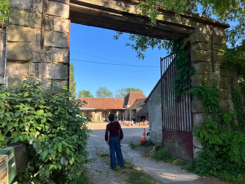 Ici, ces derniers temps, tout change à toute allure. Il y a quelques mois, ces fruitiers n’étaient pas plantés, ces serres, pas encore installées. Cette grange immense, pas encore aménagée. Ces échanges avec les résidents du Château d’à côté – trocs de compétences et de services, pas encore initiés. Ici, il y a celles et ceux qui vivent sur place, même s’ils-elles travaillent à Paris, transforment le lieu, prennent soin des animaux. Et les agriculteurs-trices bio, qui vivent ailleurs – à Montreuil, par exemple, qui travaillent la terre, et transforment leurs produits à la Ferme.