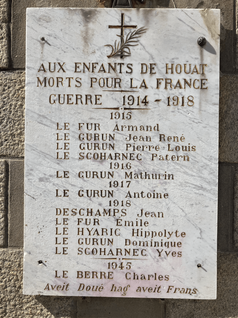 Au temps des guerres carnivores, c’est un peuple de cousins qui est allé périr bien loin des « cailloux » des deux îles : les Allanic et les Blanchet d’Hoëdic, les Le Gurun, Le Fur, Le Hyaric et Le Scoharnec de Houat.
