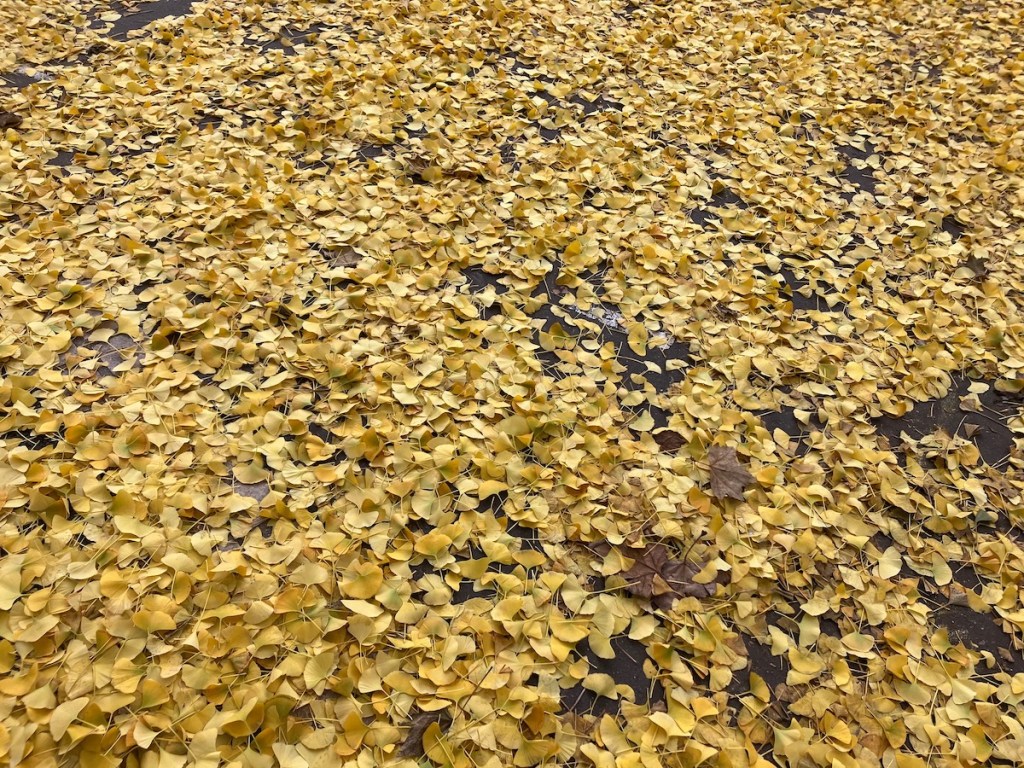 Puis, j’arrive au bout de la rue de l’église, et à mes pieds, devant la super pizzeria récemment créée par Saïd le roi de Montreuil (- combien de pizzerias a-t-il lancées, ces vingt dernières années ?) s’étend le tapis d’or qu’un arbre venu d’ailleurs, le Gingko, dépose généreusement sur le bitume, chaque année, au cœur de l’automne glacé.