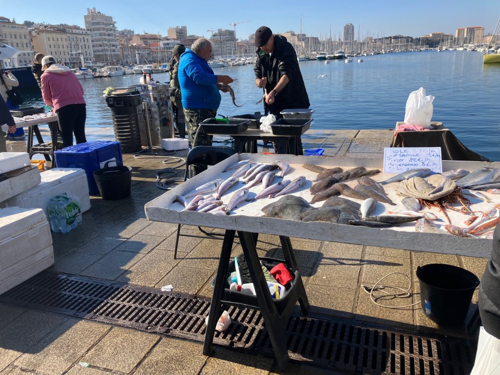 Le poisson frétille sur les étals, parmi les poulpes, les coquillages.