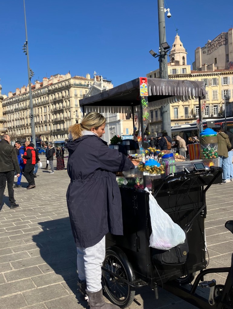 – Ici, pas de conteurs, de charmeurs de serpents, ni de danseurs gnaouas avec leurs crotales, mais souvent, comme à Marrakech, des acrobates, des darboukas, des marchands en tous genres. Ici aussi, on croise des touristes et des gens venus de partout. Le Vieux-Port est une Djemaa à sa façon. Une assemblée.