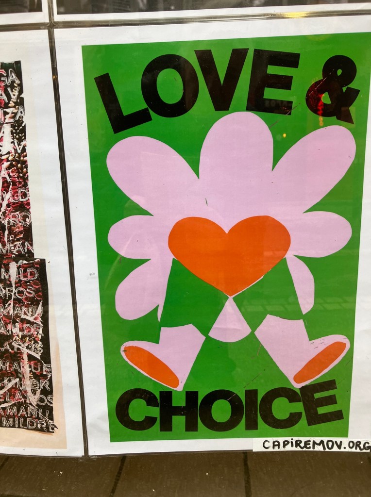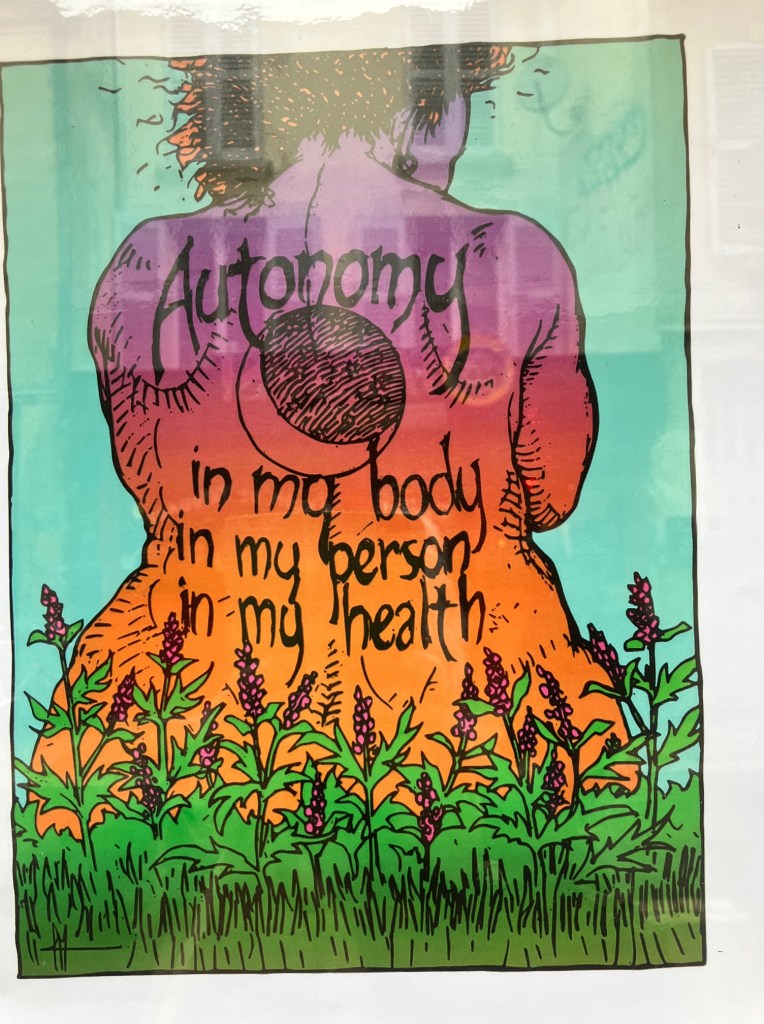 tout à l’heure, je me suis arrêtée devant la Maison des Femmes, à Montreuil. Il y a en ce moment une super expo d’affiches sur le thème – ceci est mon corps. Plusieurs d’entre elles le disent avec des fleurs, sans bénéfice escompté autre que le respect des droits des femmes.