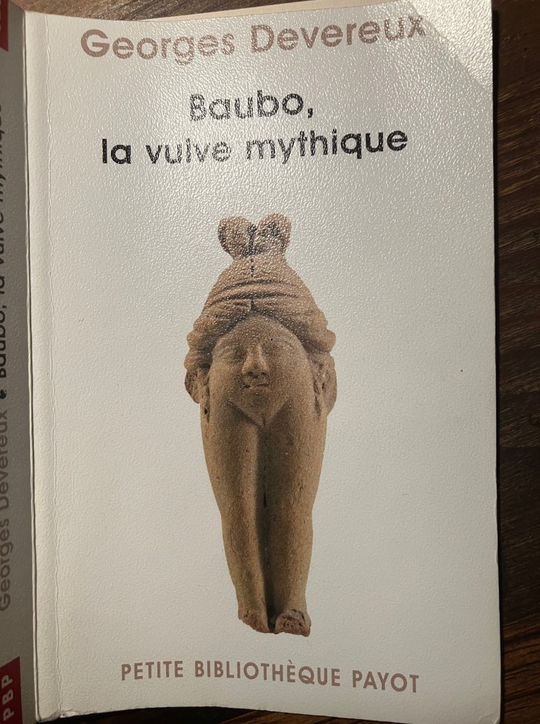 Qu’y a-t-il de libérateur dans l’exhibition du sexe, et dans le cas de Baûbo, du sexe féminin ? C’est tout le problème du rire rituel qui est posé. L’exhibition de ce qui doit rester caché a déjà valeur de violation et d’interdit. Mais la violation se fait dans des conditions telles qu’au lieu de provoquer de terribles conséquences, elle désarme le danger et fait cesser l’angoisse, dixit J.-P. Vernant.