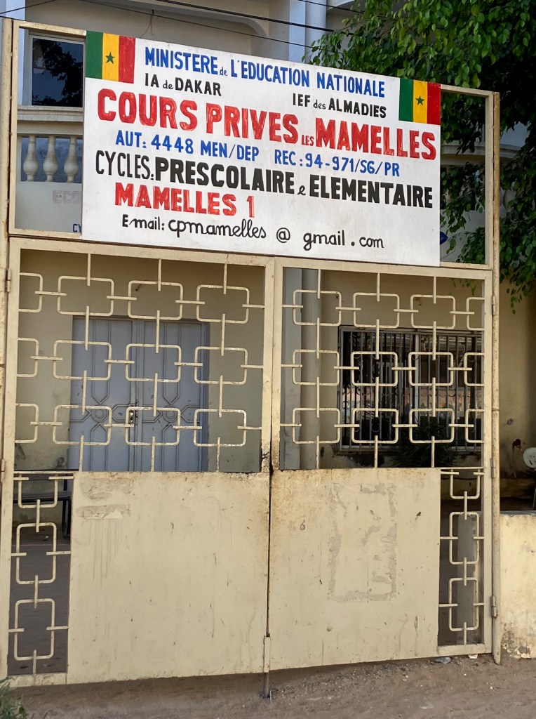 Les enfants. L’éducation. C’est une des grandes préoccupations du pays. Ici à Ouakam, dans un rayon de cent mètres, il y a pléthore d’écoles. Aux portes du lycée de Dakar, l’école privée des Mamelles, la crêche-école Chapi-Chapo (enseignement en français et en anglais), le groupe scolaire Cheikh Omar Tall, sans parler de la Daara Sokhna Fatima Bintou Imam Malick (« pour la mémorisation du saint coran et l’éducation islamique »), misérable bâtisse derrière une large flaque et une montagne d’immondices – ni des innombrables publicités qui jalonnent les rues, pour des formations de toutes sortes.