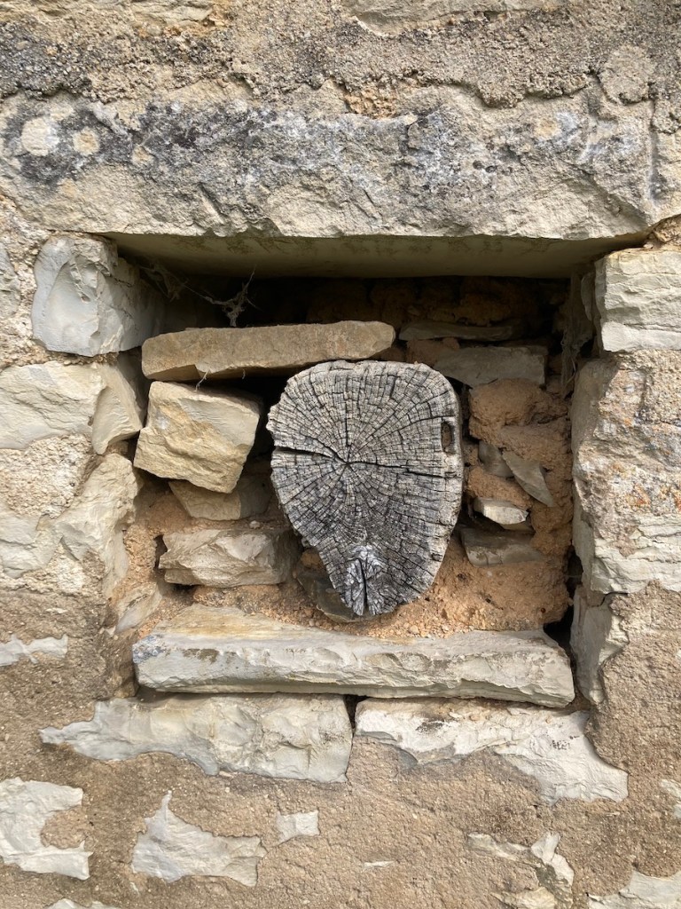 Ce jour-là, l’abbaye, le parc étaient hermétiquement clos. Comme je contournais la bâtisse, soudain, un mur s’est dressé devant moi : sous une couverture ruinée (une simple bâche, en attendant je ne sais quelle improbable restauration) – immobile, opiniâtre, aveugle, sourd-muet, il exhibait son histoire. Ouvertures déplacées, obturées, trous rebouchés, le fin travail du ciseau côtoyait les brêches grossières, les bois pourrissants. Un peu plus loin, on avait bourré ce qui avait été peut-être des lucarnes, des soupiraux, avec n’importe quoi – du plastique, des rebuts, de la terre.